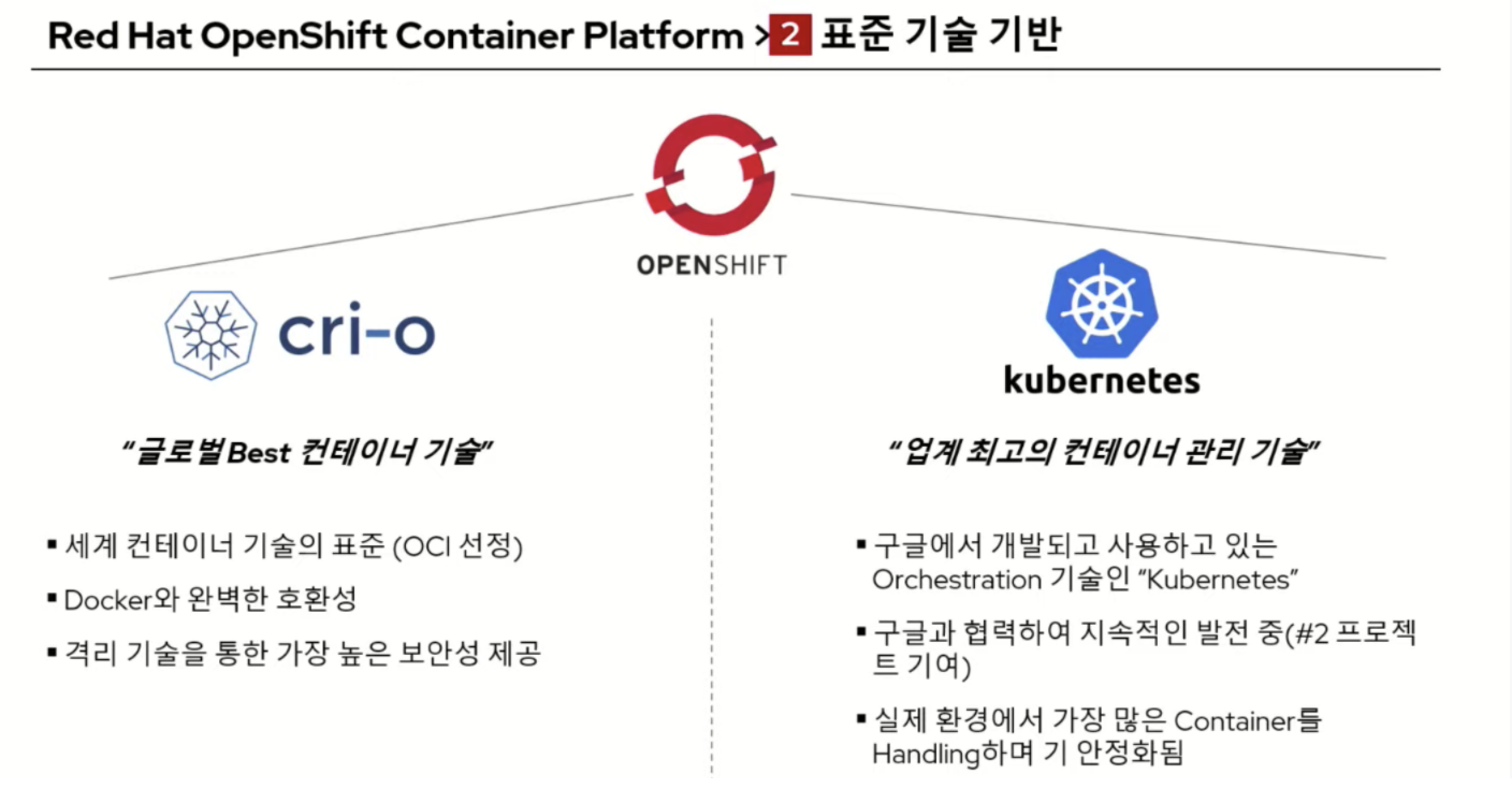 레드햇의 솔루션인 openshift는 cri-o와 k8s를 결합하여 만들었다.