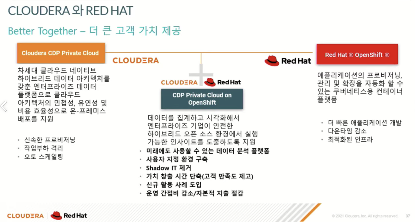 Cloudera가 CDP 통합 이후 어떤 방향으로 나아갈 것인지 방향성을 어느정도 볼 수 있다.