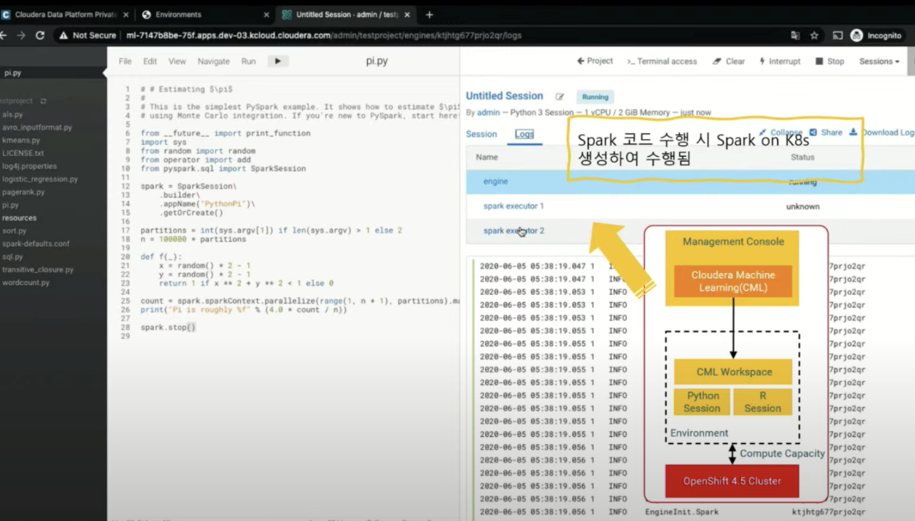 근데 하둡클러스터가 없다면 ... CDP에서 ML서비스는 spark 코드가 실행되는 시점을 spark on k8s로 자동으로 만들어줌