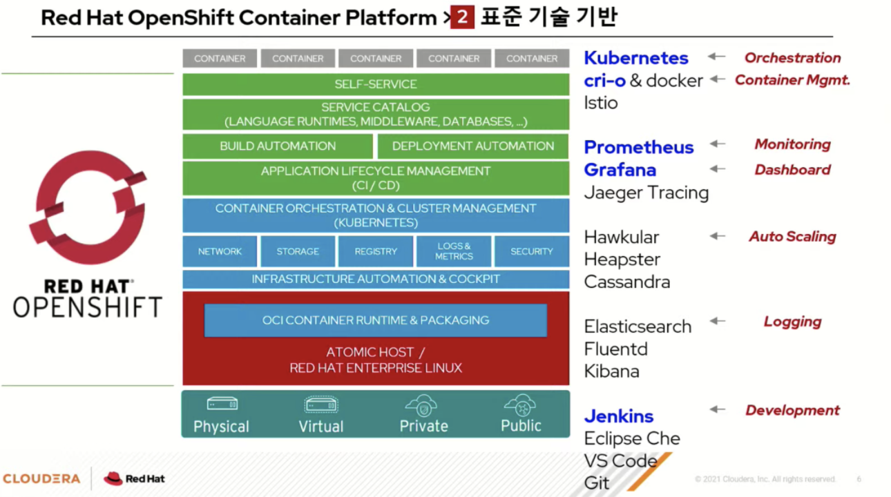 public cloud와 private cloud 정보계 + 분석계를 openshift 기반으로 제공한다.