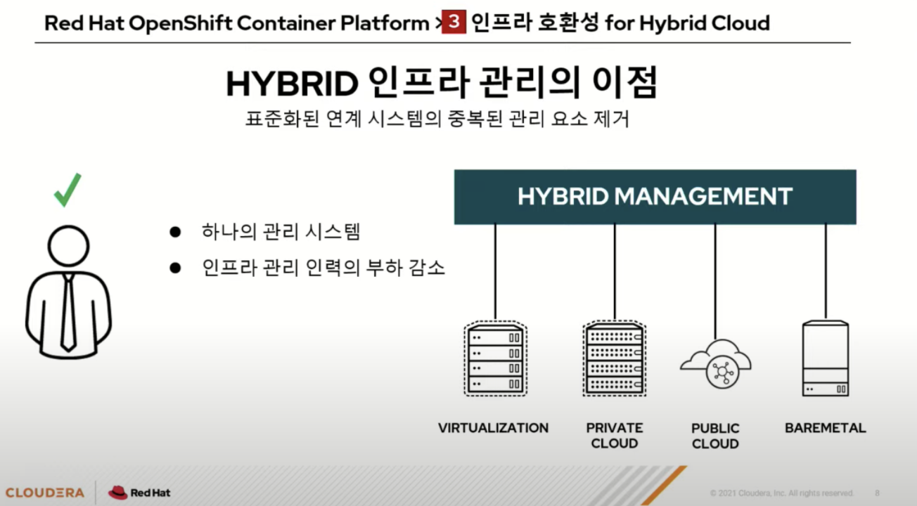 따라서 둘다 운영하는 Hybrid 인프라 방식이 많은데 운영자는 그대로고 플랫폼이 여럿이면 관리 포인트가 많아진다.